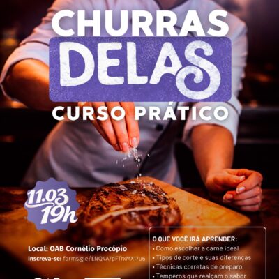 Você, advogada, que domina sustentações, prazos e audiências… já pensou em dominar também a brasa? 😉 O Churras Delas é um encontro criado especialmente para mulheres advogadas que querem sair do óbvio, aprender algo novo e viver uma experiência leve, divertida e cheia de conexão. Mais do que um curso,...